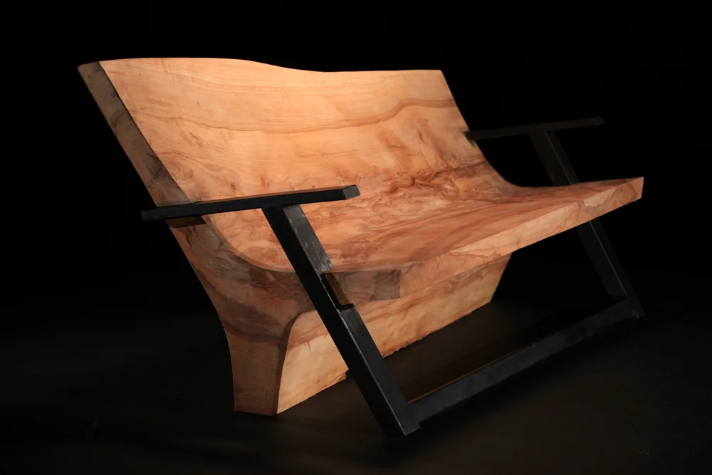 I had a vague design in my head, one that included the stub of a huge branch that projected out from the Ash trunk I was working with. Here, I will skip the paragraph I wanted to write explaining how Big John (my chainsaw artist) and I had a severe miscommunication on which part of the line to cut on, and ultimately how I had to scrap my first concept ( I mean, when cutting with a chainsaw, it’s not a strict line, many times, they have to cut out wedged chucks, like when cutting down a tree, thus, cutting on the wrong side of my line was a 6″ plus mistake). For some reason, I have a knack for trying to stick to my original idea even when the material tells me not to. I did this on the first challenge, trying to make a square peg fit into a round hole, and didn’t learn my lesson. In retrospect. I should’ve gone back to the drawing board, and made something completely different, even now, I can think of a dozen things I should’ve done, but at the time my mind was thinking of only this chaise, that had now evolved into a bench because of the missing stub.