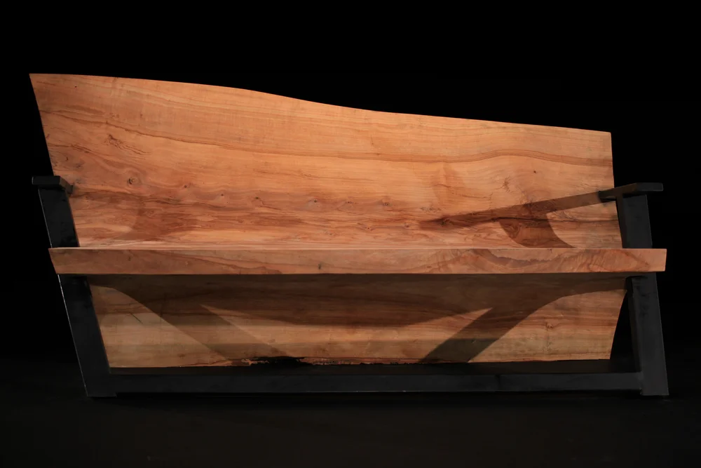 Once I had the shape as precise as possible, I drug it out of the yard into the shop area, mortised a horizontal groove into the back for a piece of 1” x 2” steel tubing I had ordered the day before. My Idea was to wrap a steel frame around the piece using it as a base when it met with the floor, but also giving it a sense that the tree had grown around it. I’ve always been fascinated with how trees will grow around barbed wire, or metal posts and this was my effort to get away from that chachki stuff I couldn’t get out of my head.