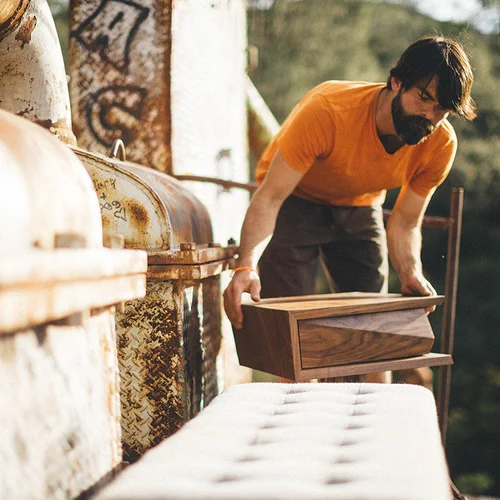 The Ozark is the perfect side table to admire from any angle. With an aim to trick the eye, the Ozark was inspired by conceptual cars from the early 60s—most notably the Plymouth XNR.